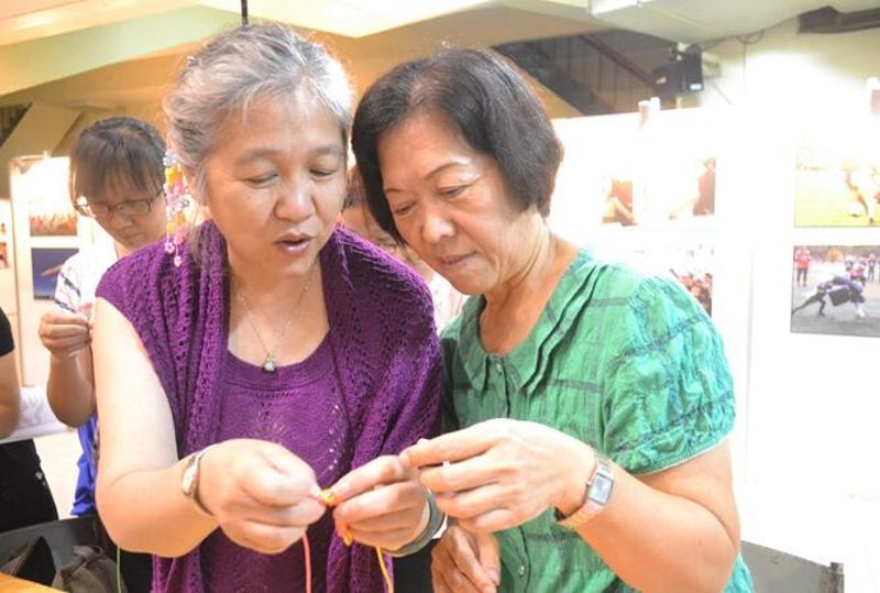 來自北京朝陽的手工編織能手李貞手把手地教臺灣民眾編織技巧。