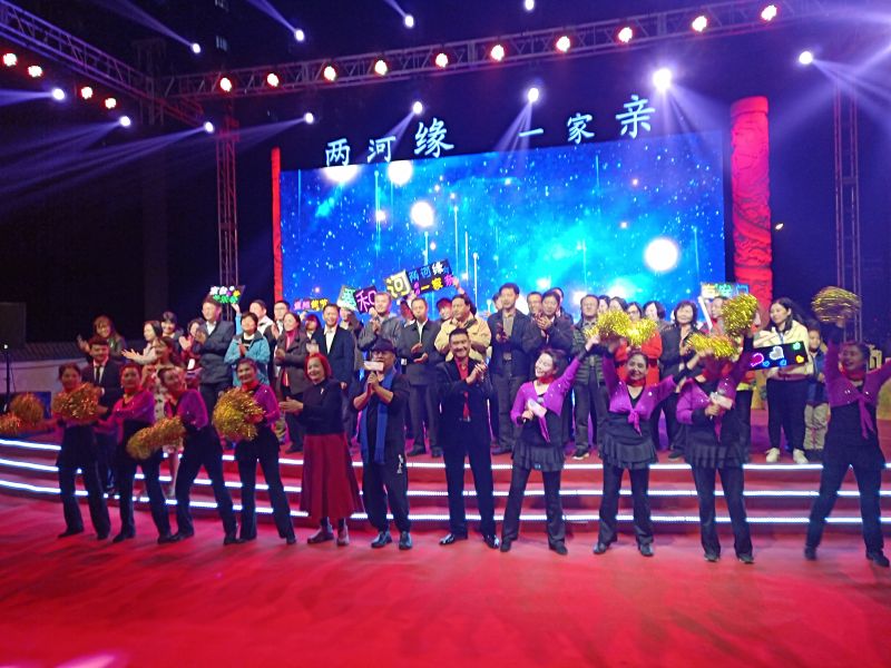 當“我們都是一家人”的熟悉旋律響起,兩岸都響起了一片熱烈掌聲,兩岸觀眾隨之一同合唱、舞蹈,雖相隔千里,卻有著親如一家的溫馨。在現場觀眾揮舞著“兩河緣,一家親”的熒光棒,共同喊出“兩岸一家親”的心聲中,音樂會圓滿落幕。