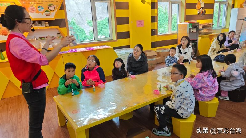 活動首站來到京臺基層交流基地一一蜜蜂大世界參觀。園區融合了蜜蜂養殖、蜂產品加工銷售、蜜蜂文化旅游等多元產業,是密云區特色農業發展基地。在科普展廳,講解員向大家普及了蜜蜂的起源類型、生長發育過程和釀蜜筑巢的奧秘等,小朋友們還自己動手制作了手工蜂蜜香皂,在輕松快樂的氛圍中學習到了自然科學知識,也切身感受到了大陸生態綠色農業發展的實踐成果。