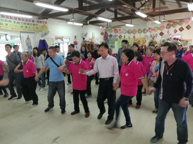 參訪團(tuán)一行與六龜區(qū)老濃社區(qū)居民共同游戲、跳舞