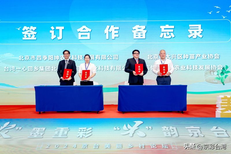 活動現(xiàn)場,大興區(qū)種苗產(chǎn)業(yè)協(xié)會與高雄市智慧農(nóng)業(yè)科技發(fā)展協(xié)會簽訂種苗育苗技術(shù)及科技農(nóng)業(yè)發(fā)展備忘錄,臺灣一心回鄉(xiāng)農(nóng)業(yè)科技集團與北京四季陽坤農(nóng)業(yè)發(fā)展有限公司簽訂2024種苗培育合作協(xié)議及未來五年戰(zhàn)略合作伙伴協(xié)議書,這兩項合作的達成充分體現(xiàn)了兩岸農(nóng)業(yè)方面交流的成果,更進一步促進了兩岸農(nóng)業(yè)科技的交流合作。臺灣相關(guān)單位參與并共同發(fā)起的北京市大興區(qū)種苗協(xié)會成立啟動儀式將開幕式推向高潮,隨著兩岸農(nóng)業(yè)領(lǐng)域?qū)<覍W者印上手印,北京市大興區(qū)種苗協(xié)會正式宣布成立。主論壇環(huán)節(jié),來自京臺兩地的嘉賓圍繞智慧農(nóng)業(yè)科技、鄉(xiāng)村振興、種苗產(chǎn)業(yè)等主題開展主旨發(fā)言?!扒唷眲?chuàng)沙龍環(huán)節(jié),臺灣創(chuàng)生優(yōu)秀案例負責人生動介紹了經(jīng)驗成果,現(xiàn)場嘉賓頻頻交流互動,兩岸青年紛紛表示收獲頗豐。
