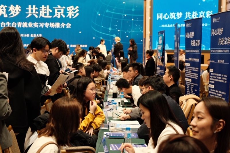 隨后舉辦的雙選會氣氛熱烈,涵蓋人工智能、金融科技、生物醫藥、文化創意、法律服務等多個領域的用人單位設立咨詢展位,與臺青面對面交流。不少學生現場投遞簡歷并預約二次面試,部分企業當場發出實習offer。參會臺生表示,活動把政策、崗位、服務送到“家門口”,讓大家真切感受到首都對臺灣青年的誠意與溫度。